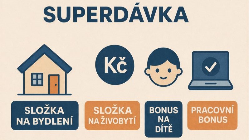 • Superdávka nahrazuje příspěvek na bydlení, doplatek na bydlení, příspěvek na živobytí a přídavek na dítě